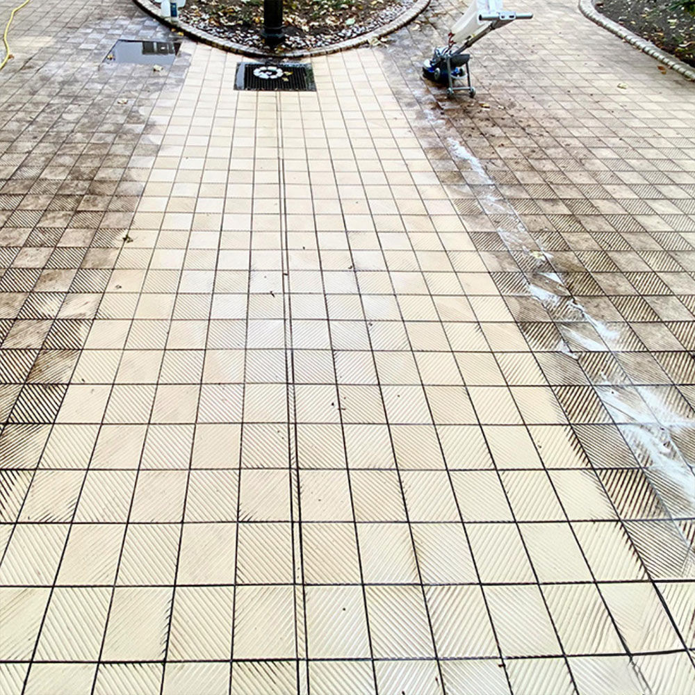 Bei maschineller Anwendung die Fläche mit Einscheibenmaschine und geeignetem Reinigungspad abfahren und absaugen. Anschließend mit klarem Wasser nachwaschen und erneut absaugen.