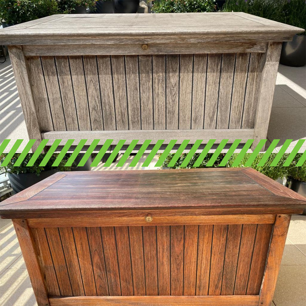 Der Arvox Pro Holzreiniger ist die ideale Lösung für alle Holzarten, speziell im Außenbereich, wo Materialien Witterungseinflüssen wie Sonne, Regen und Schnee ausgesetzt sind. Im Gegensatz zu Hochdruckreinigern, die Holz aufrauen und anfälliger für Schmutz machen, schont der Arvox Reiniger das Material, verlängert seine Lebensdauer und beugt Neuverschmutzung vor. Das Produkt eignet sich hervorragend zur Grundreinigung vor dem Auftragen von Holzölen oder Lasuren. Von Terrassendielen bis hin zu Holzfassaden und Gartenzäunen – Arvox Pro bewahrt die natürliche Schönheit des Holzes. Dank der 2-Komponenten-Formel entsteht aktiver Sauerstoff, der Schmutz tiefenwirksam löst und zersetzt. Die Formulierung ist vegan, mikroplastikfrei und frei von Chlor, NTA und Lösungsmitteln. Es bleiben lediglich umweltfreundliche Rückstände wie Wasser, Sauerstoff und Natriumcarbonat.