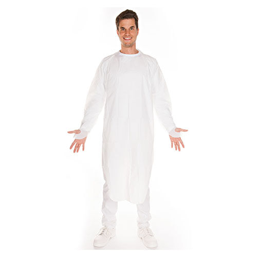 Der Untersuchungskittel von Hygostar ist aus dem hochwertigem Material CPE angefertigt. Das besondere an diesem Material ist, dass CPE flüssigkeitsdicht ist. Somit ist es ideal als Einwegkittel in sensiblen Bereichen geeignet oder an Orten an denen der Schutz vor Kontaminationen im Vordergrund steht. Hierzu zählen die Einsatzbereiche wie Krankenhäuser, Altenheime oder medizinische Bereiche. Der Einwegkittel ist mit einem Daumenloch am Ärmel ausgerüstet. Mit dem vorhandenen Bindeband in der Taille können Sie den Kittel problemlos verschließen. Das CPE-Material ist in der Anlehnung auf EN 14126 auf Virendichtigkeit getestet. Schützen Sie sich mit den Untersuchungskittel aus CPE.