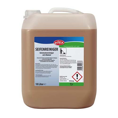 Entfernt fettige, ölige Verschmutzungen sowie Absatzstriche auf PVC-, Stein-, Linoleum- und Laminatböden. Streifenfreier Glanz auch auf empfindlichen Böden! Polierbar. Eilfix Seifenreiniger mit Alkohol ist schaumarm eingestellt und für die Verwendung in Maschinen konzipiert. Konzentrat für die maschinelle Flächenreinigung.