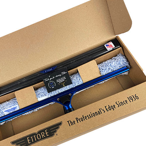 Ettore hat dem Quick Release Wischer neuen Glanz verpasst. Wahlweise blau oder schwarz eloxiert sieht er super edel aus und ist gewohnt hochwertig verarbeitet. Passend dazu: 12er Pack Ettore Master Wischergummi in der Tube. Der Ettore Pro Grip T-bar ist im Set komplett mit Mikrofaserbezug. Als exklusiver Bonus bekommen Sie mit dem limitierten Set den Ettore Gold Squeegee Pin.