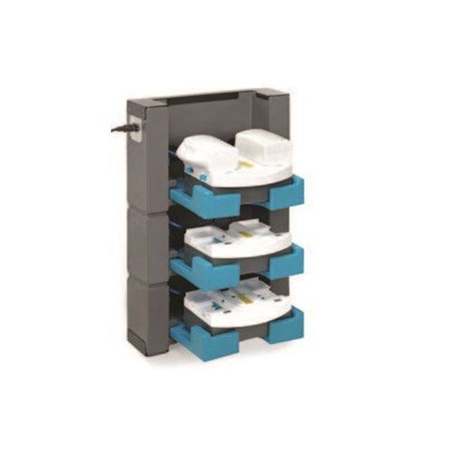Mit dem i-stack Wandladegerät laden Sie Ihre i-power Akkus für den i-mop bequem und platzsparend auf.. In Umgebungen, in denen Platz knapp und jeder Zentimeter kostbar ist, bietet das i-stack eine platzsparende Lösung für das Laden von Akkus. Das i-stack wird modular aufgebaut über mehrere Etagen von 1 bis 6. Wählen Sie je nach Bedarf die Anzahl der Lade-Etagen. Stecken Sie die einzelnen Komponenten einfach zu einer Einheit zusammen. Dadurch haben Sie die Flexibilität, die Ladekapazität Ihren individuellen Anforderungen anzupassen, ohne dabei zusätzlichen Platz zu beanspruchen. Dieses feste Wandladegerät bietet die gleiche Funktionalität wie andere Wandladegeräte mit mehreren Etagen, ist jedoch flexibler und kann auf seinem Sockel überall platziert werden, um Ihren Bedürfnissen optimal gerecht zu werden.