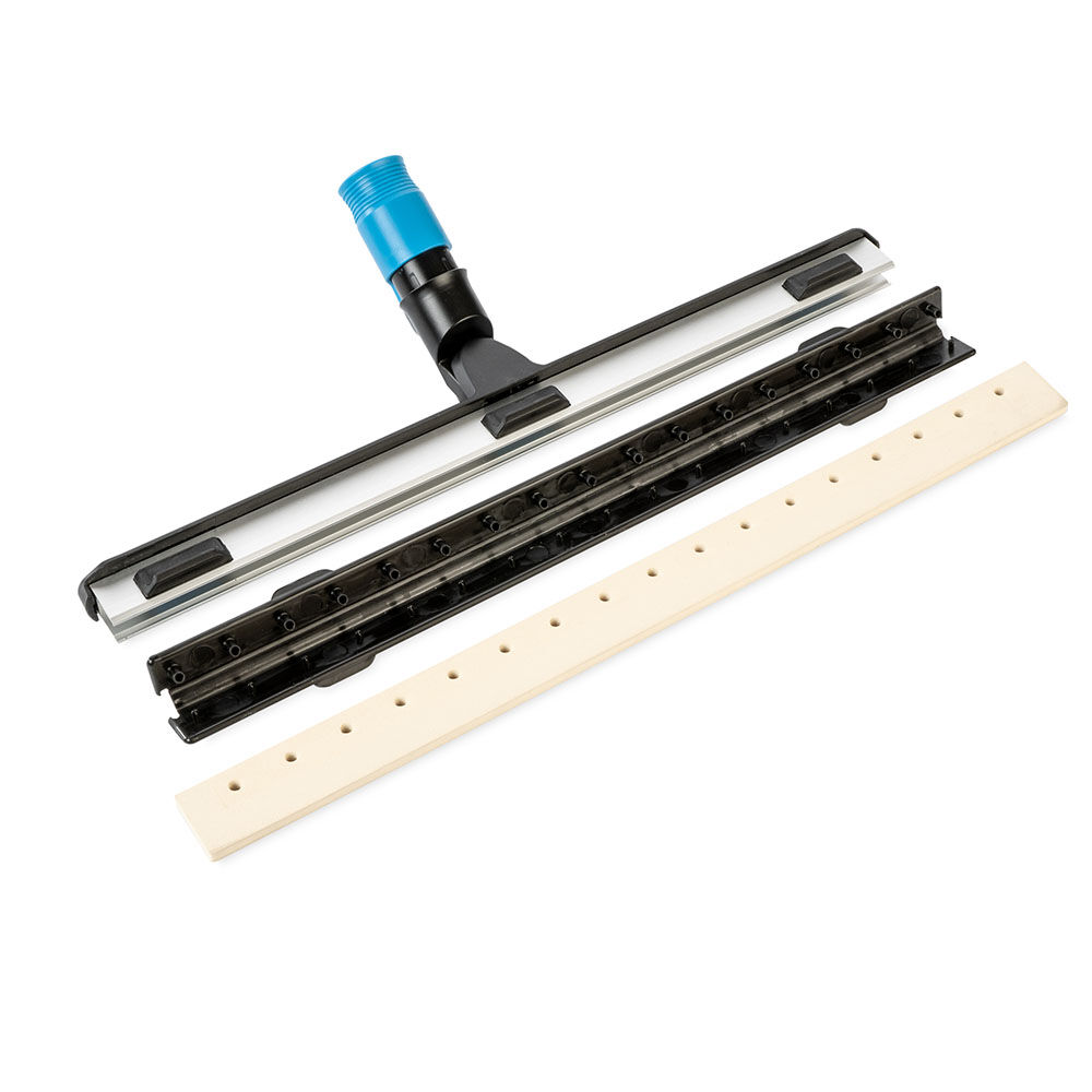 Moerman Carabao Wasserschieber 45 cm mit Swivel-Funktion Wir sind sehr stolz auf unsere Moerman Bodenwischer, denn sie sind das Ergebnis jahrzehntelanger Erfahrung und Know-how. Das gilt auch für den Bodenwischer für das Carabao-Wischsystem: Mit seinem einzigartigen Klick-Stielansatz und einem Drehwinkel von 180° ist der Carabao-Wischer für jede Wischherausforderung gerüstet. Der Gummistreifen ist austauschbar, so dass eine lange Lebensdauer garantiert ist! Die 3 in den Rahmen integrierten Magnete sorgen für eine einfache Befestigung des Wischers. Vorteile 180°-Schwenkwinkel für eine sanfte S-Bewegung auswechselbare Einzelklinge Dura-Flex Naturkautschukstreifen optimale Schwenkbewegung integrierte Magnete für die Moppbefestigung bewährte Moerman-Qualität Eenfache Reinigung unter Schränken und Betten wischt Wasser sehr gut auf (fingertrocken) autoklavierbar (nach Entfernen des Gummis) 3-Punkt-Mop-Verbindung mittels Magneten einzigartige Stielhalterung Produkteigenschaften Größe: 45 cm Abmessungen (L x B x H): 445 x 80 x 80 mm Gewicht: 294 gr. Farbe: schwarz, silber, türkisblau Material: Aluminium, PP, Dura-Flex VE: 5 Stk