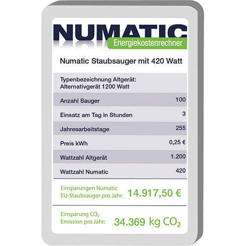 Der Numatic Staubsauger ERP180-11 überzeugt mit seiner herausragenden Absaugleistung. Dank der FloMax- und HiPro-Technologie verfügt der Staubsauger eine ausgezeichnete Saugleistung. Mit einem langlebigen und energieeffizienten 420 Watt Motor ist der Staubsauger ideal für die täglichen Reinigungseinsätze geeignet. Das Gehäuse des Numatic ERP180-11 Saugers besteht aus 75 % recyceltem Kunststoff erster Güte und ist somit eine gute Wahl, wenn es um das Thema Umweltfreundlichkeit geht. Der Re-Flo Staubsauger ist mit einem einfachen Kabel-Schnellwechselsystem ausgestattet. Dies ermöglicht es Ihnen den Austausch des Kabels unkompliziert zu gestaltet. Das robuste Edelstahl Zubehörset AS0 unterstützt den Staubsauger bei jedem Einsatz. Ein weiteres Merkmal des Numatic ERP180-11 ist die hohe Filterleistung, die der (H)EPA E11 Norm entspricht und sorgt für eine keimfreie und saubere Umgebung.