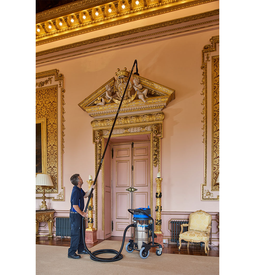 Mit dem skyVac Nass- und Trockensauger für den Innenbereich, im Set mit leichten Saugstangen, reinigen Sie schnell und effizient hochgelegene und schwer erreichbare Bereiche z.B. Hallendecken und Lagergebäude, Einkaufzentren, Schulen, historischen Gebäuden und Kirchen.