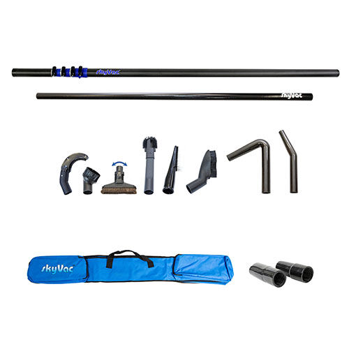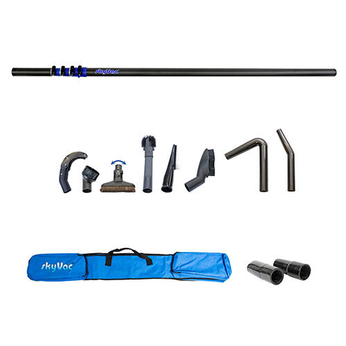 skyVac Saugstangen-Set für den industriellen, gewerblichen oder häuslichen Gebrauch Ideal für Reinigungsarbeiten im Innenbereich in bis zu 12 Meter Höhe. Hauptmerkmale passt auf jeden herkömmlichen Wassersauger einzigartiger Luftstrom für eine schnelle Schmutzabsaugung Rohrset auch kompatibel mit allen herkömmlichen Wassersaugern erhältlich in 3 unterschiedlichen Längen: 6 m / 9 m / 12 m Inhalt eines Standardsets Karbonstangen, je 1,5 Meter lang 8 verschiedene Aufsatzwerkzeuge bzw. Bürstenenden Tragetasche Flexi- Schlauchmanschette 44 mm im Durchmesser Produkteigenschaften TeleskopstangenMaterial:KarbonfaserDurchmesser:44 mmGewicht:305 gLänge:1,5 m