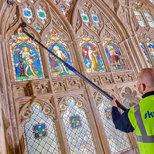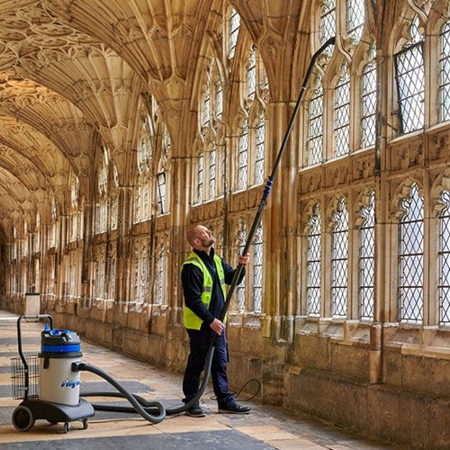 Mit den Internal Teleskop-Saugstangen von skyVac saugen Sie hochgelegene Innenbereiche mit ihrem vorhandenen Profi-Staubsauger!