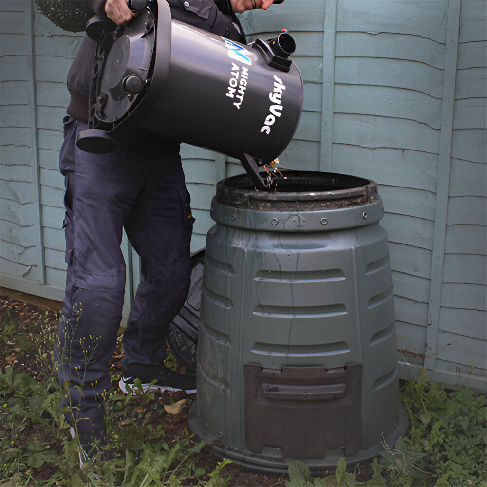 Im Vergleich zum skyVac Atom, verfügt der Mighty Atom über den größeren 50 mm Cyclonic-Sauganschluss. Die Cyclonic-Technologie sorgt mit einem verstärkten Luftstrom für schnellere Ergebnisse und weniger Verstopfungen, da der Schmutz in der Trommel besser verteilt wird. Der skyVac Mighty Atom ist außerdem mit einer praktischen Ausblas-Öffnung ausgestattet – ideal zum Laubblasen.