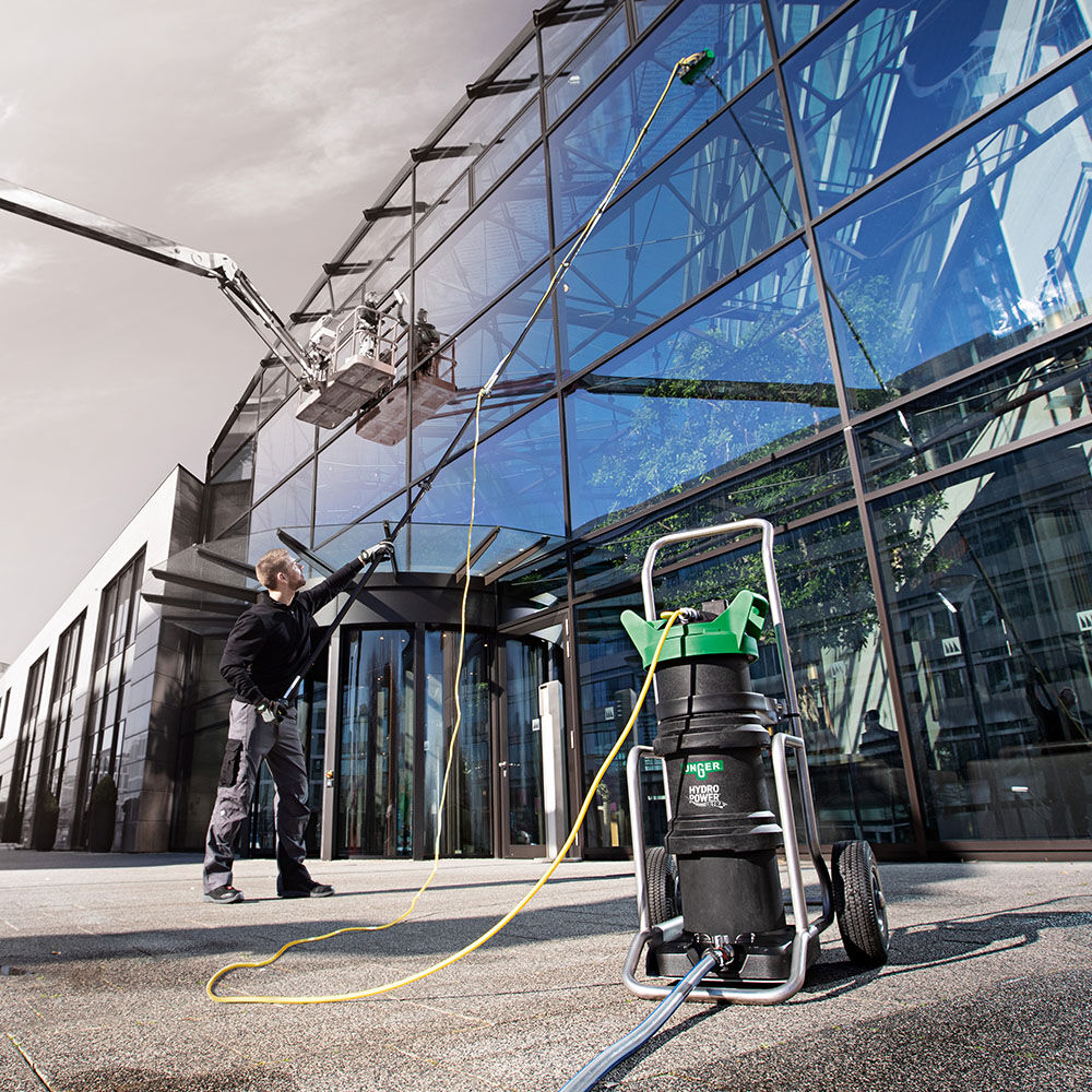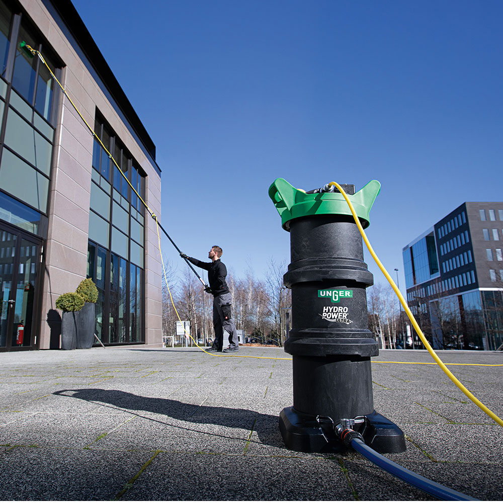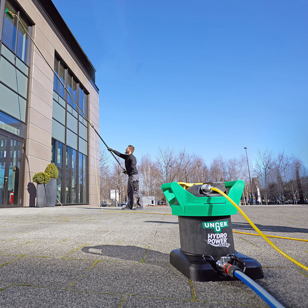 Das UNGER HydroPower Ultra Osmosesystem setzt einen neuen Standard in der Deionisierungsfilter-Technologie für die Reinigung mit Reinwasser. Ein absoluter Mehrwert für jeden professionellen Glas- und Gebäudereiniger.