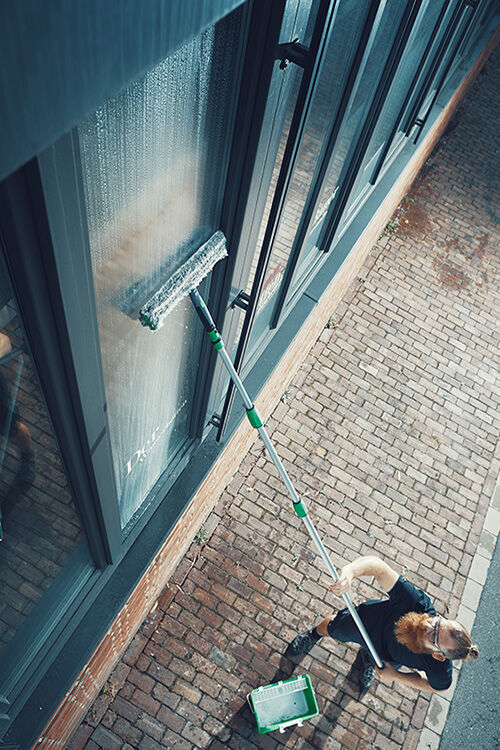 Die 3-teiligen OptiLoc Teleskopstangen von Unger erhalten Sie bei uns in verschiedenen Längen zwischen 1,85 und 9 Metern für die Reinigung in bis zu 10 Metern Höhe. Die hochwertigen Aluminium-Teleskopstangen werden inklusive ErgoTec Sicherheitskonus ausgelierfert.